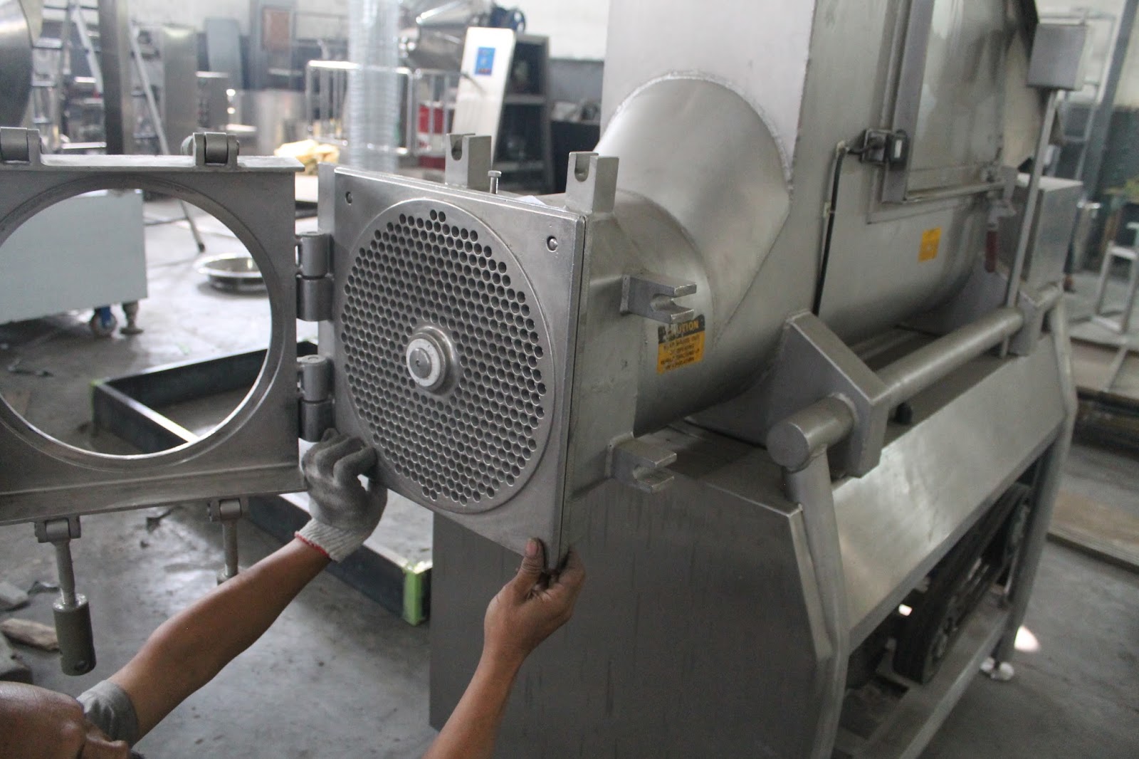 - Siapkan Alat bantu tadi posisikan tepat di mulut screw grinding (lihat Foto)
