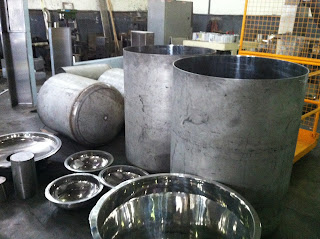 - Tanki dari plat tebal 2mm materialnya SS316L sudah disipakan terlebihdahulu dengan proses roll dan dilas kemudian difinishing bagian dalamnya dengan menggunakan mesin poleshing. karena bagian dalam tanki akan kontak dengan produk maka permukaan bagian dalam harus dipolesh secara halus sampai permukaan terlihat mirror.