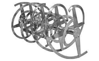 Prinsip kerja :Jenis pengaduk ini digunakan pada larutan kekntalan yang tinggi dan berbentuk powder pada umumnya dengan beroperasi pada rpm yang rendah pada bagian bladenya tersebut. Ribbon dengan bentuk spiral dibentuk dalam sebuah bagian helical (bentuknya seperti baling baling screw) dan ditempelkan kepusat sumbu pengaduk. sanngat cocok digunakan untuk mengaduk produk dengan bentuk powder. powder yang akan dicampur alirannya akan berliku-liku pada bagian bawah dan naik ke bagian atas secara bolak balik. - Pengaduk jenis jangkar / anchor