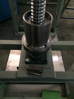 - Screw lifting : Untu menaik turunkan tanki maka mesin in dilengkapi dengan as screw sebagai mekanisnya. As screw ini terbuat dari baca harden yang didalamnya terdapat ball bearing agar proses putaran screwnya lebih ringan saat menaikan tanki yang berisi liquid tersebut.