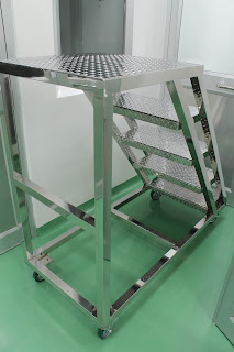 - Tangga untuk memudahkan para operator memasukan bahan yang akan di blanding. memiliki 4 anak tangga dan 1 pijakan utama di atas untuk operator berdiri saat memasukan bahan.