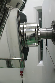 - Chamber : berfungsi sebagai penampung produk juga sebagai ruang dimana nanti akan diaduk dengan cara berputar. Material yang digunakan adalah SS316L dengan ketebalan 3mm. Adapun dimensi atau ukuran yang dibuat kurang lebih diameter 850 mm dengan ketinggian 1800 mm. Dibagian chamber terdapat Manhole dengan diamer 400 mm