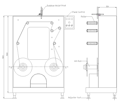Mesin Rewinder Merupakan sebuah mesin yang berfungsi untuk menggulung ulang foil plastik yang akan diberi kode/tanggal/print secara kontinyu. Cara kerja dari mesin ini adalah Roll Foil ditempatkan pada Roller 2 (bukan penggerak utama), kemudian ujung plastik ditarik dan diposisikan sesuai alur Roll menuju Roller 1 (penggerak utama). Roll penggerak utama diputarkan oleh sebuah motor yang ditransmisikan melalui belt dan pully untuk menggulung ulang foil plastik yang telah diberi kode/tanggal/print tersebut
