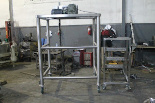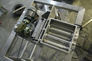 Rangka body : untuk rangka stand menggunakan hollow pipa diamter 3 inch dengan material SS304, untuk dudukan gearbox dan motor menggunakan plat SS304 dengan ketebalan 12 mm, untuk chamber atau housing rotor menggunakan Plat SS316L.