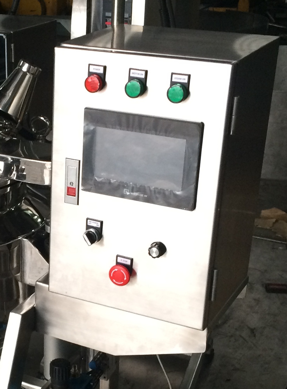 Mesin atau alat kristalisator dilengkapi double jacket dengan sumber pemanas steam. Alat ini didesign sesuai standar GMP dimana material yang berinteraksi langsung dengan produk menggunakan bahan SS316L dan untuk material yang tidak berinteraksi langsung dengan produk menggunakan bahan SS304.